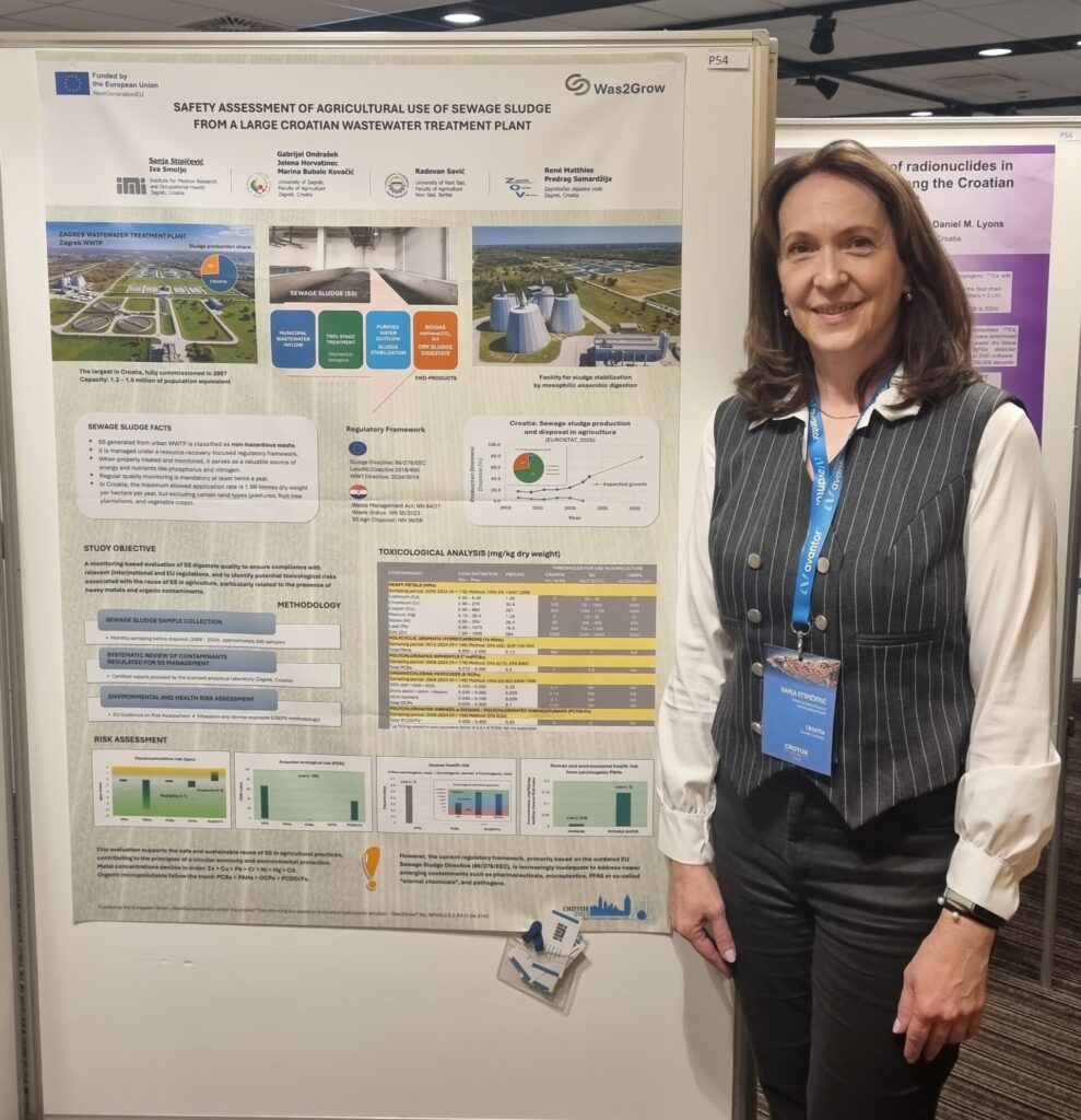 The 7th International Congress of the Croatian Society of Toxicology – CROTOX 2025 was held on Rab from October 5 to 8, 2025. In the section dedicated to the monitoring of emerging contaminants, a member of the IMI research team, Sanja Stipičević, presented the research topic title „Safety assessment of the agricultural use of sewage sludge from a large Croatian wastewater treatment plant“. The results indicated that properly treated sewage sludge meets the current quality standards and can be a valuable resource for agriculture, providing nutrients beneficial to crops. However, stringent regulatory requirements still limit its agricultural reuse. More details can be found in Abstracts of the 7th CROTOX meeting.